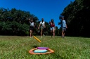 Creëer overal je eigen disc golfbaan met Backnine van Waboba! De set bevat 1 Flying Target Ring en 4 Waboba Wingman schijven. Gooi de ring om de uitdaging van het parcours in te stellen! Gooi vervolgens je Wingman schijf om in zo min mogelijk worpen op of in de Ring te landen. Voor nog meer plezier kun je regels maken wanneer een schijf in een zone op de ring landt! Scorekaart inbegrepen.